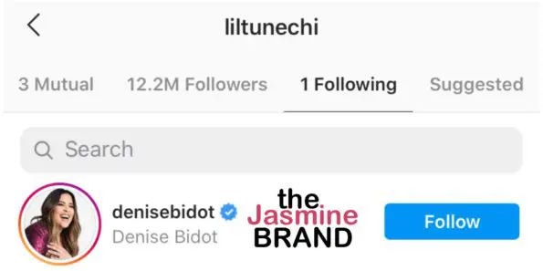 Now, the Grammy-award winning rapper’s Following tab is back to one, but, this time, its Denise Bidot.