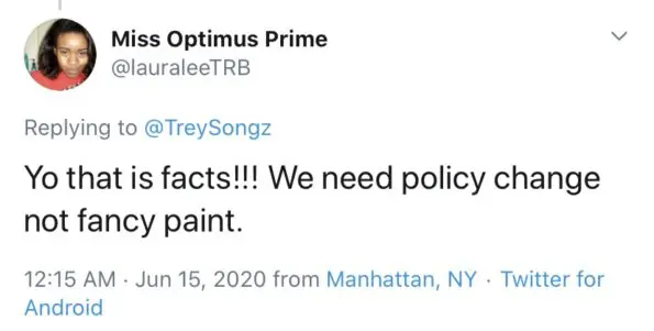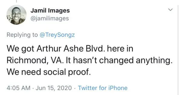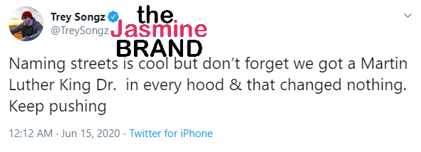 “Naming streets is cool but don’t forget we got a Martin Luther King Dr. in every hood & that changed nothing. Keep pushing”