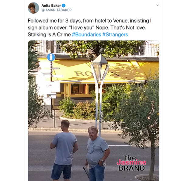 Grammy-Award winning singer, Anita Baker is using her experience with a stalker to raise awareness about police abuse. She has always taken to social media to detail her experiences, dating back to last year, when she posted photos of two men who allegedly followed her for 3 days to get an autograph.