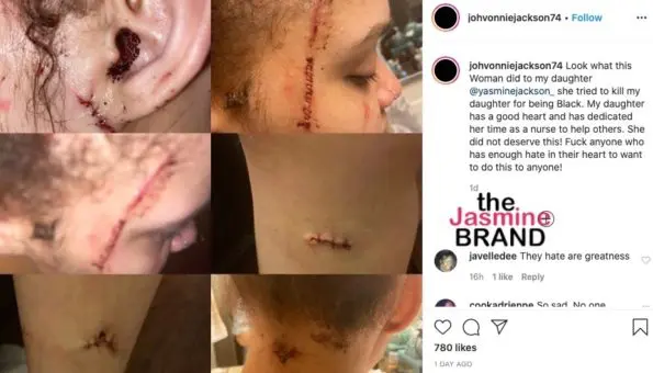 Yasmine Jackson’s mother is Joh’Vonnie Jackson, the alleged love child of Joe Jackson and a woman named Cheryle Terrell. Yasmine Jackson revealed graphic photos of wounds to her head, neck, and face – detailing an incident in which she was stabbed several times while taking a walk in her neighborhood. Yasmine Jackson told Instagram followers: