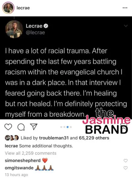 Lecrae received backlash after he appeared to agree with the statements.