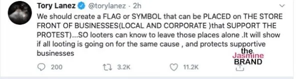 Earlier this month, Tory Lanez suggested a way to protect black businesses from looters and rioters as protests broke out across the nation. He wrote: