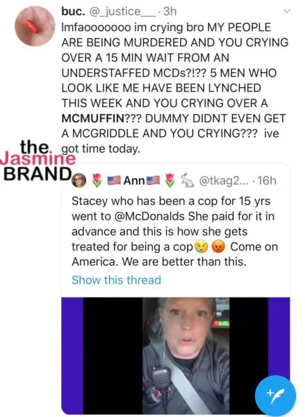 Do you feel the officer is justified in breaking down over her experience at McDonalds’? Let us know in the comments.