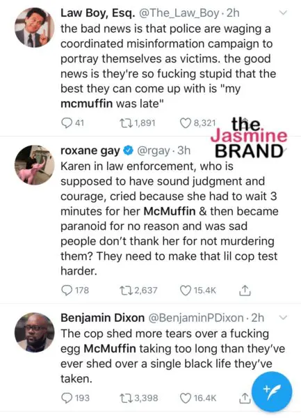 Social media users have called out a white female police officer, now dubbed #McMuffin, after a video she posted of her breaking down over the long wait of her food at McDonald’s went viral.