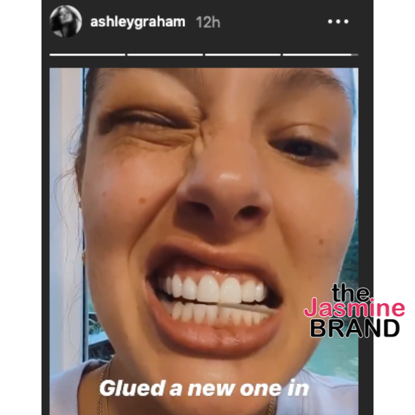 No official word on whether or not Ashley Graham‘s chipped tooth was a hilarious joke or if it was actually the real deal (and, of course, real painful)! Regardless, Ashley took to her IG stories and shared brief videos of her showing off a fresh new, glued in tooth.