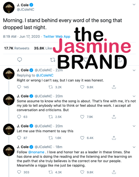 Because of the backlash he received on social media for the song, J.Cole took to his twitter to stand by his lyrics in the single,