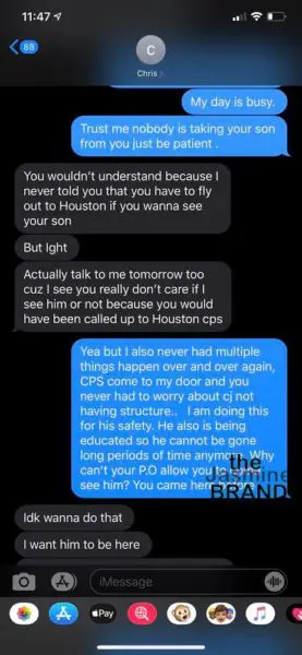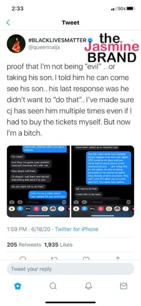 “proof that I’m not being “evil” ..or taking his son. I told him he can come see his son..his last response was he didn’t want to “do that”..I’ve made sure cj has seen him multiple times even if I had to buy the tickets myself. But now I’m a b*tch.”