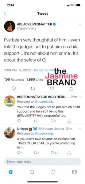 “I’ve been very thoughtful of him. I even told the judges not to put him on child support ..it’s not about him or me. It’s about the safety of Cj”