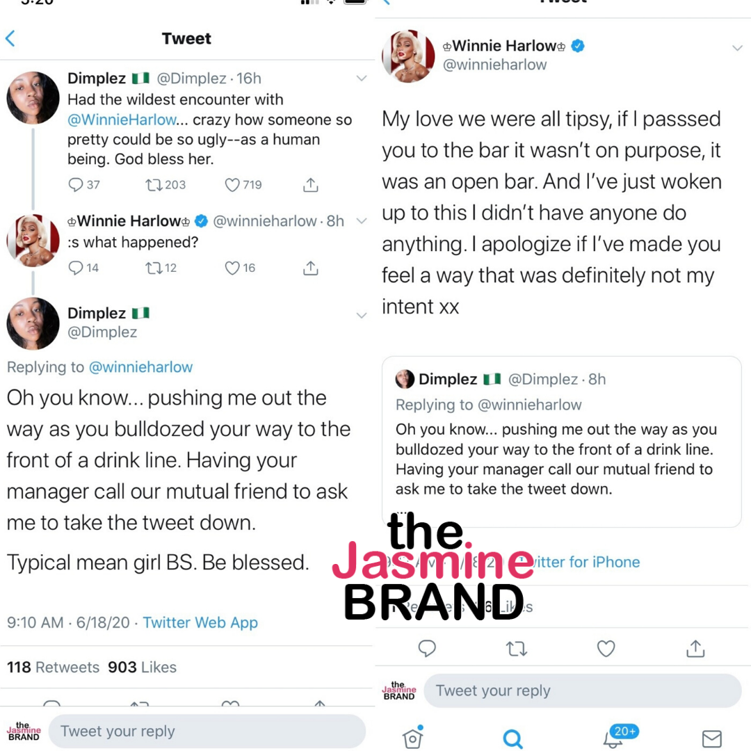 Model Winnie Harlow got into a Twitter disagreement with a woman named “Dimplez”, a music and marketing industry executive, who claimed that the model pushed her at an a party. Dimplez, started off her tweets stating,
