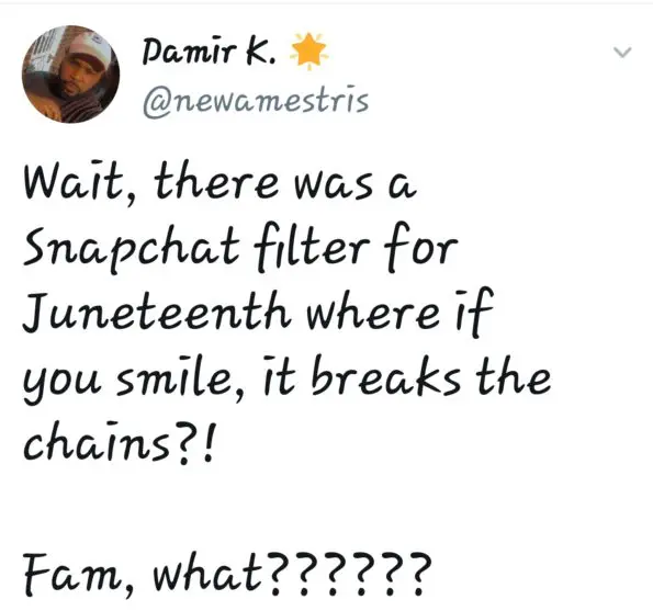 This Snapchat #Juneteenth filter prompts users to smile to break the chains…