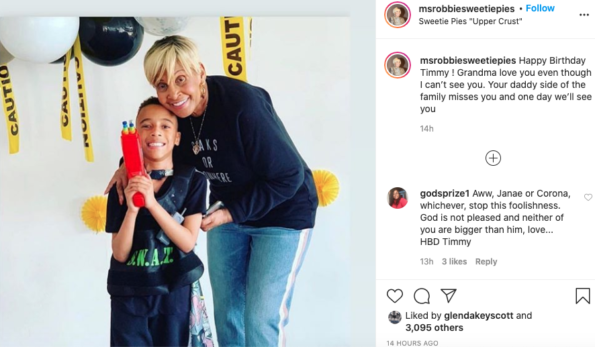Ms. Robbie continued claims with yet, another post, accusing Jenae of withholding her grandson because of money. In part, she stated,