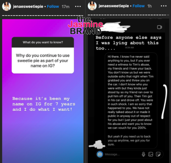 After that video was posted, it appears that Tim Norman’s ex-girlfriend, Jenae Wallick began posting messages and answering fan questions on her Instagram telling her side of the story.