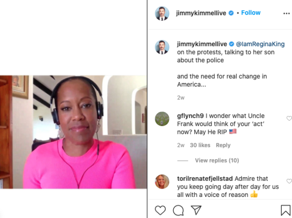 Jimmy Kimmel captioned his video with Regina King,