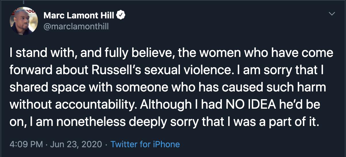 Journalist Marc Lamont Hill has also faced backlash for being on the Drink Champs episode with Russell, despite the music mogul having multiple sexual assault accusations against him. Marc Lamont Hill took to twitter to apologize for being on the episode with Russell: