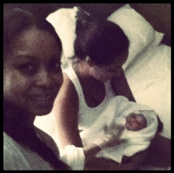 Eyes full of tears and barely able to speak to the emergency operator @imanshumpert tied a pair of red headphones around the umbilical cord and the ambulance made there grand entrance 5 min later. She opened her eyes right away, gazed into mine and never cried! He handed her to me wrapped in our bath towel and wiped her face for me to see what LOVE really is. She has blown Christmas away! Our family is complete. Her blueprint will be unmatched. Welcome Iman Tayla Shumpert Jr. Mommy carried you. Daddy delivered you. #MeetTheParents we love you baby girl
