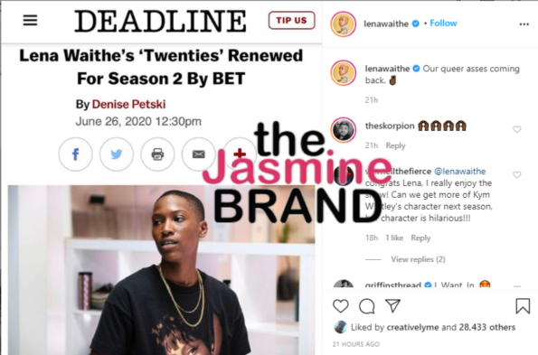 Lena Waithe’s “Twenties” series is coming back for season 2 on BET.