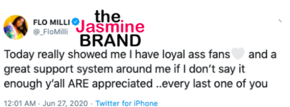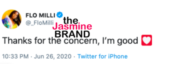 The 20-year-old Flo Milli returned to Twitter about two hours later to let fans know she was okay. She went live to show that she was fine, and also thanked her fans for their concern. It seemed this incident showed her how loyal her fans truly are to her: