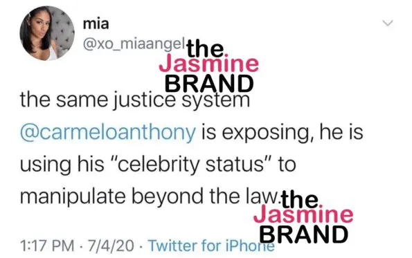 “the same justice system @carmeloanthony is exposing, he is using his “celebrity status” to manipulate beyond the law.”