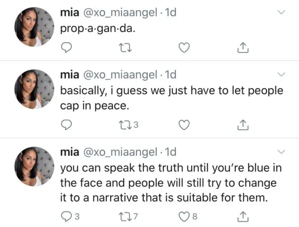 Mia Burks fired off several rounds of subliminal tweets that could also be shots at her daughter’s alleged father. She tweeted:
