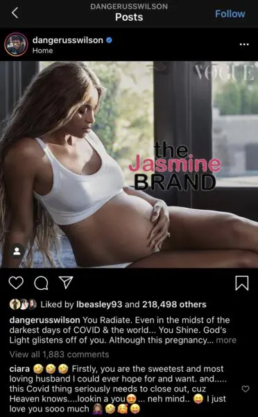 Ciara also had a few words for him in the comments: