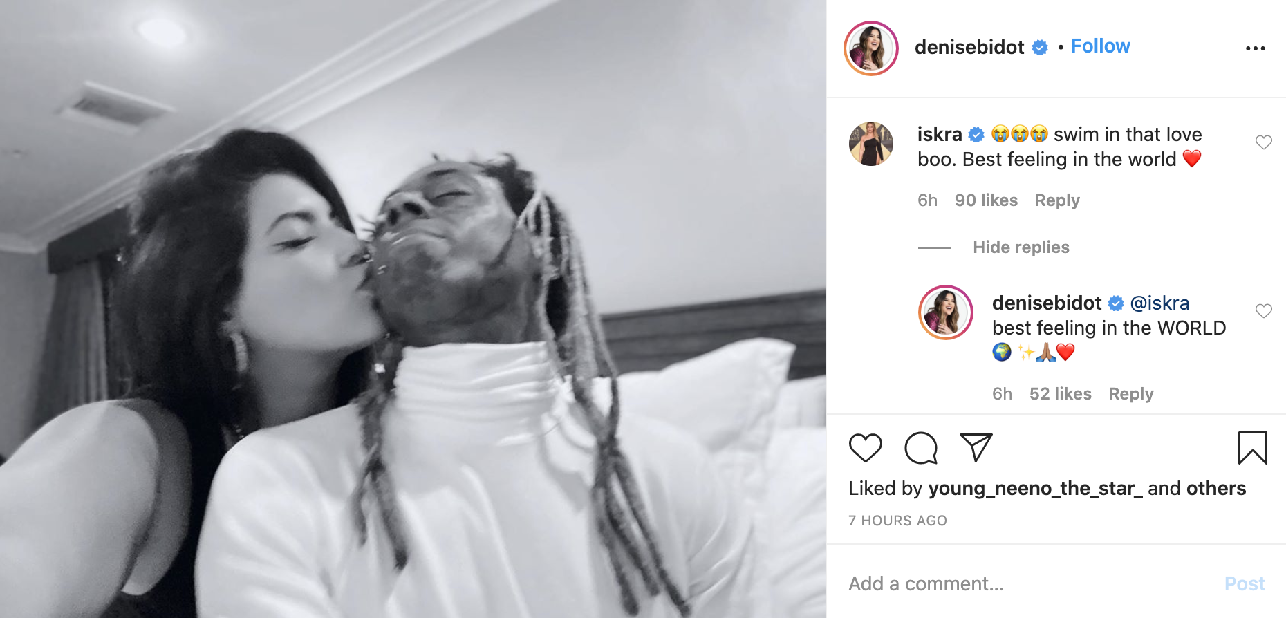 Lil Wayne debuted Denise Bidot on his social media shortly after with a photo of her with the caption,