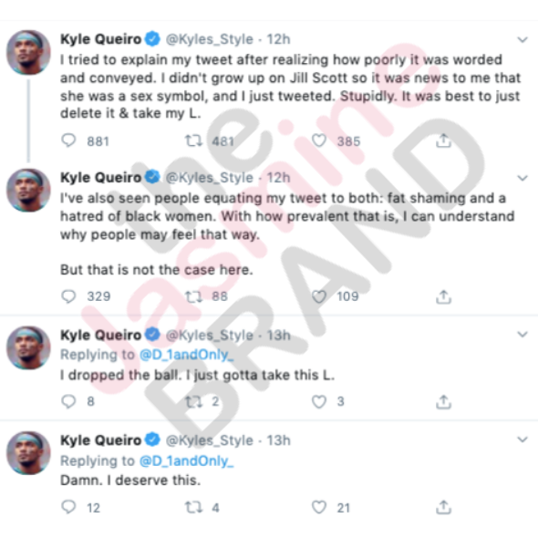 What do you think about Kyle Queiro’s now-deleted tweets questioning Jill Scott’s appeal? Sound off in the comments!