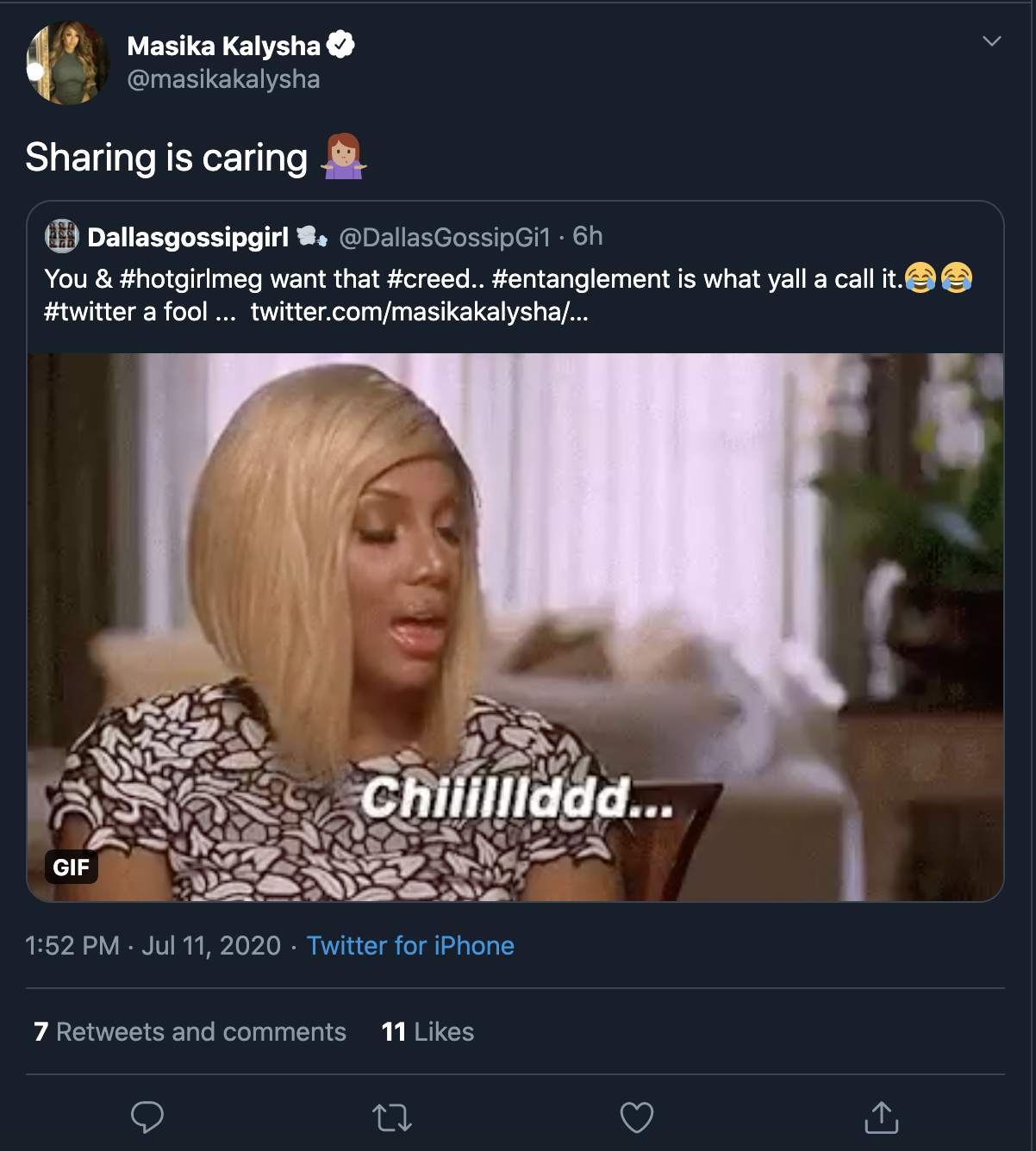 One fan tells Masika Kalysha that both she and rapper Megan thee Stallion are interested in Michael B. Jordan right now. Masika then responded to the fan saying,