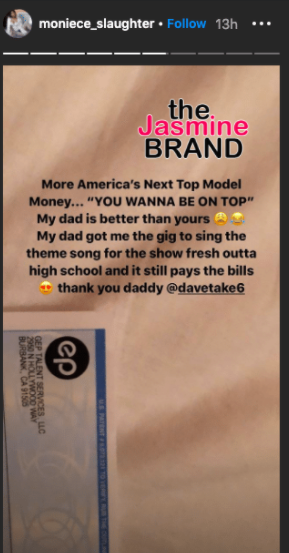 The reality star posted to her Instagram story Monday (July 13) and Moniece Slaughter shared that she still receives payment to this very day from singing this song right out of high school. Moniece Slaughter positioned a corner of the check into the frame and stated: