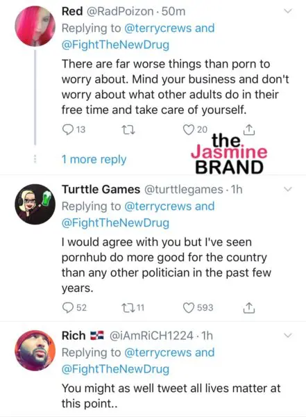 While most pro-porn fans responded that pornography itself is not the problem, (citing sex trafficking being the viable problem), several users responded in confusion asking if the popular porn site was even publicly funded, to make it eligible for defunding in the first place.
