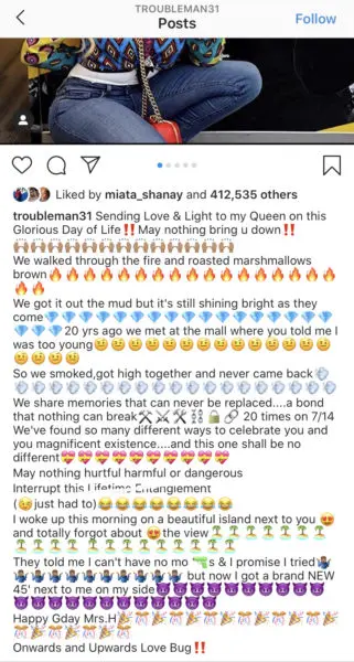 “We’ve found so many different ways to celebrate you and you magnificent existence….and this one shall be no different. May nothing hurtful harmful or dangerous Interrupt this Lifetime Entanglement (*wink Emoji* just had to)”