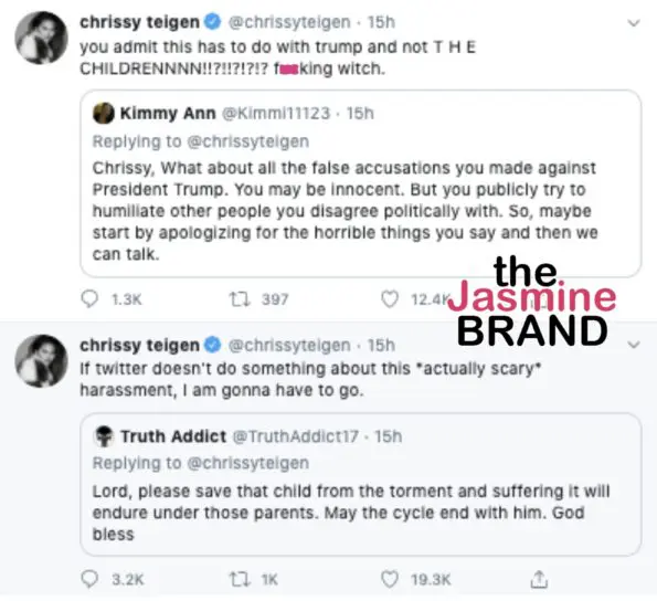The mother of two then replied to another user who asked for the Lord to save children from suffering they may endure from “those parents.” Teigen wrote,
