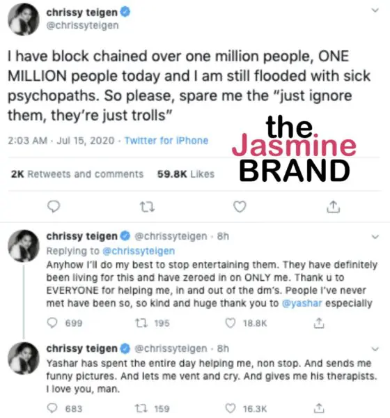 Teigen mentioned that even those she has blocked more than a million people from her Twitter page, she is still being flooded with “sick psychopaths”.