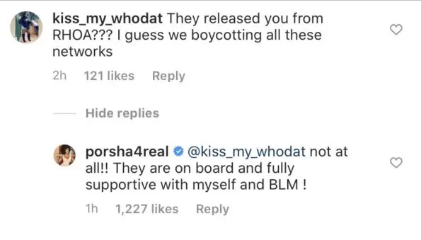 Porsha Williams also responded to comments alleging that she got fired from RHOA because of her involvement in the protests, she has since denied the rumors.