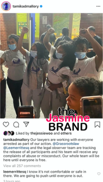 She also stated they would stay there until everyone who was arrested is released. She wrote,