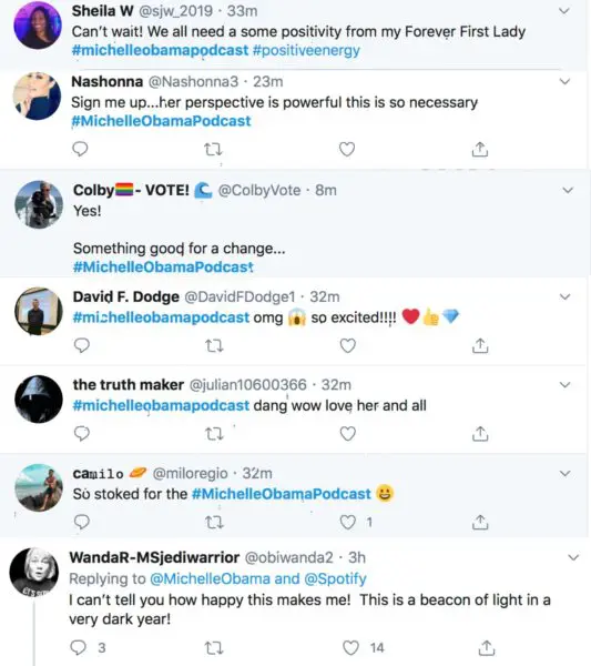 The internet seemed to be excited about the former First Lady’s podcast as it trended on Twitter.