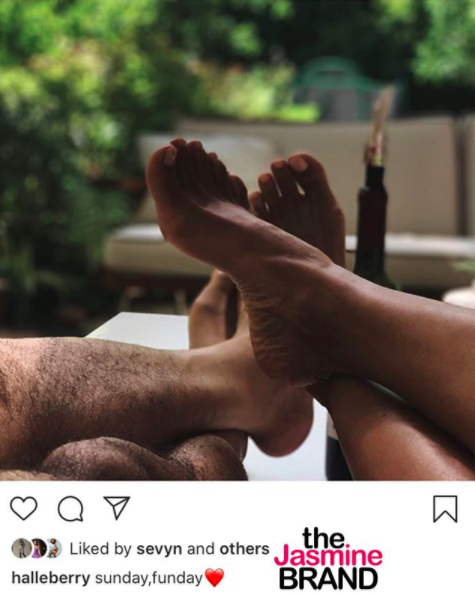 Halle Berry, 54 shared a photo of her and a mystery man interlocking their feet with the caption,