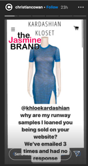What are your thoughts on Christian Cowan calling out Khloe Kardashian for allegedly trying to sell his sample piece online?