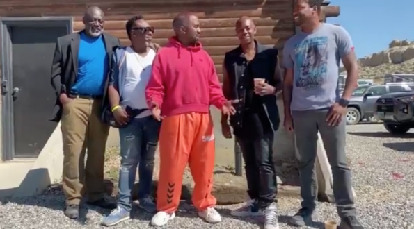 In the video, several men are standing together with West and Chappelle as Kanye tries to coax the comedian into giving an uplifting pep talk. Kanye states,