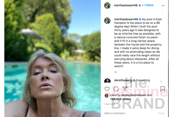 “I’m here to take @marthastewart48’s swimming lesson. If I look this good at 78 I better still have a pool to show myself off in.”