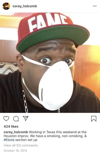 Fortunately, Corey Holcomb has been about the mask life. Here’s a photo of the 52-year-old masked up in Houston in protection of the 2014 ebola outbreak.