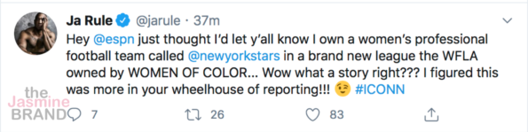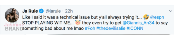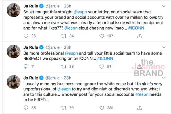 Ja Rule took to his Twitter, responding to ESPN’s video, saying that it was very unprofessional and disrespectful for the network’s social media team to post the clip.