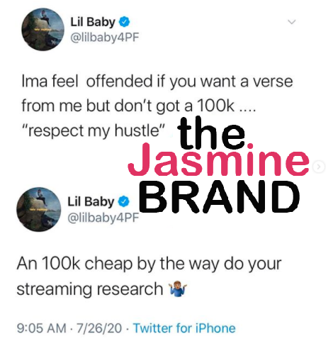 Lil Baby Says He’ll Feel ‘Offended If You Want A Verse From Me But Don’t Got $100K’, Later Deletes Tweet