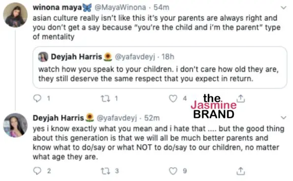 She also responded to one user who spoke on some parents in Asian culture.