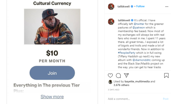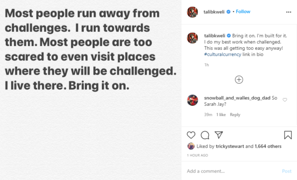 In the end, Talib Kweli maintains that he isn’t afraid of conflict. He told Instagram followers: