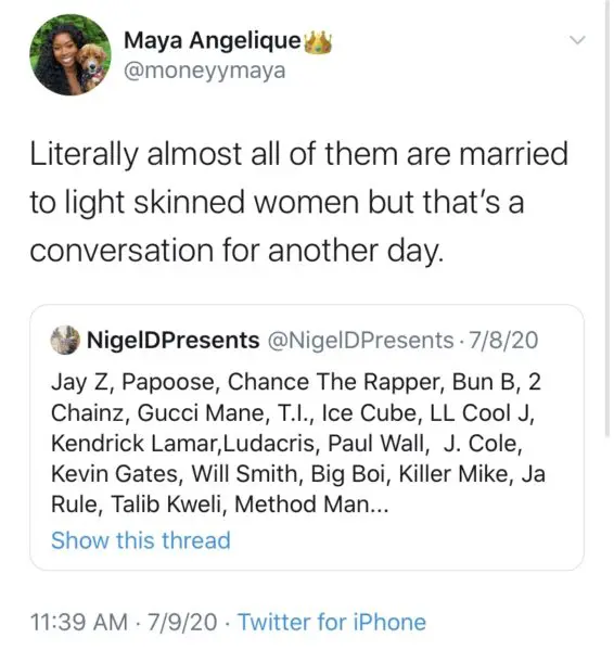 “Literally almost all of them are married to light skinned women but that’s a conversation for another day.”