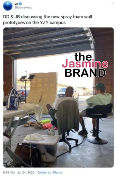West uploaded of picture of the two talking in what appears to be a garage.