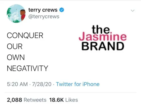 This tweet was shortly after Crews came under fire for recent remarks about defeating white supremacy. He tweeted recently,
