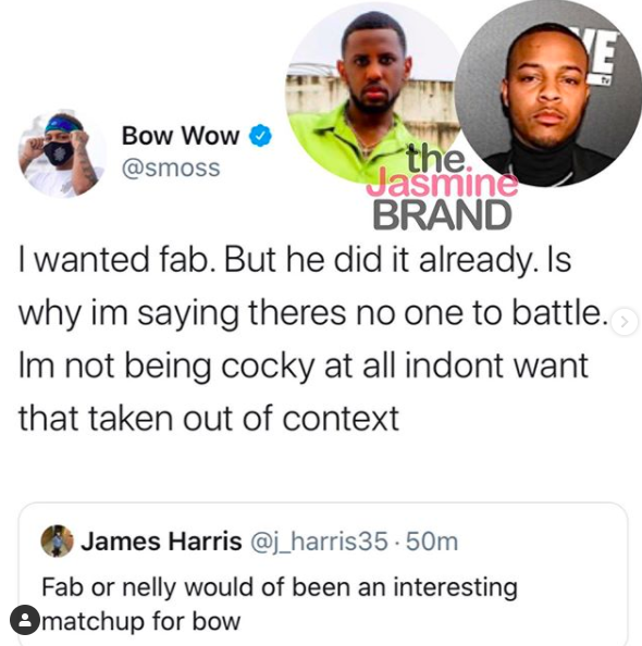 Bow Wow previously said he wanted to battle Fabolous, who previously battled Jadakiss, but shut down the idea of him going head-to-head with Soulja Boy.