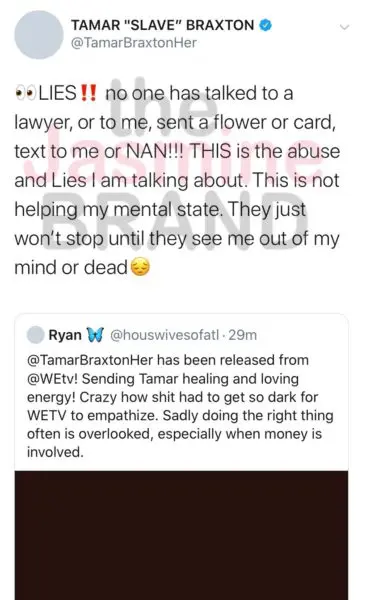 Tamar Braxton took to twitter to deny the reports and revealed that she hasn’t even received any gifts nor well wishes from the network,