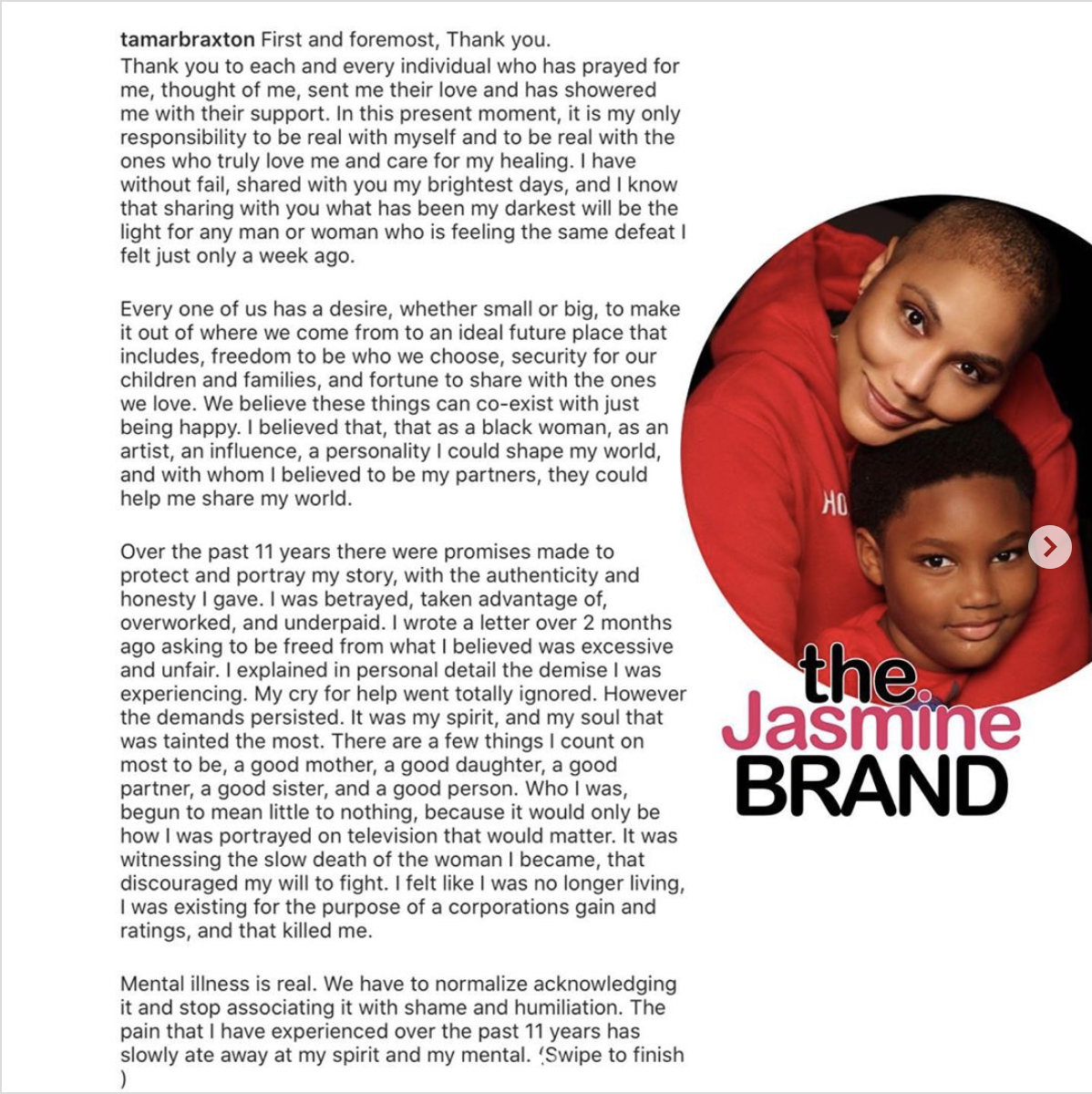 “Tamar Braxton has been an important part of our network family for more than a decade. As she focuses on her health and recovery at what is clearly a difficult and personal time, we will work with her representatives to honor her request to end all future work for the network.”